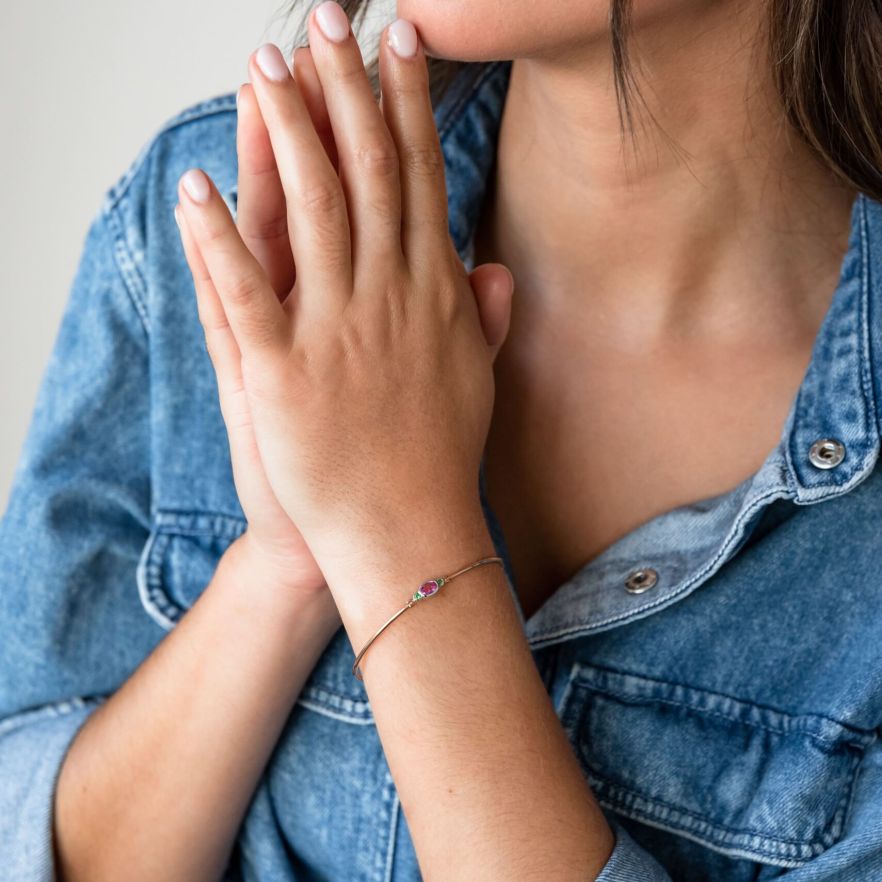 Bracelet or gris et rouge Saphir et Tsavorite