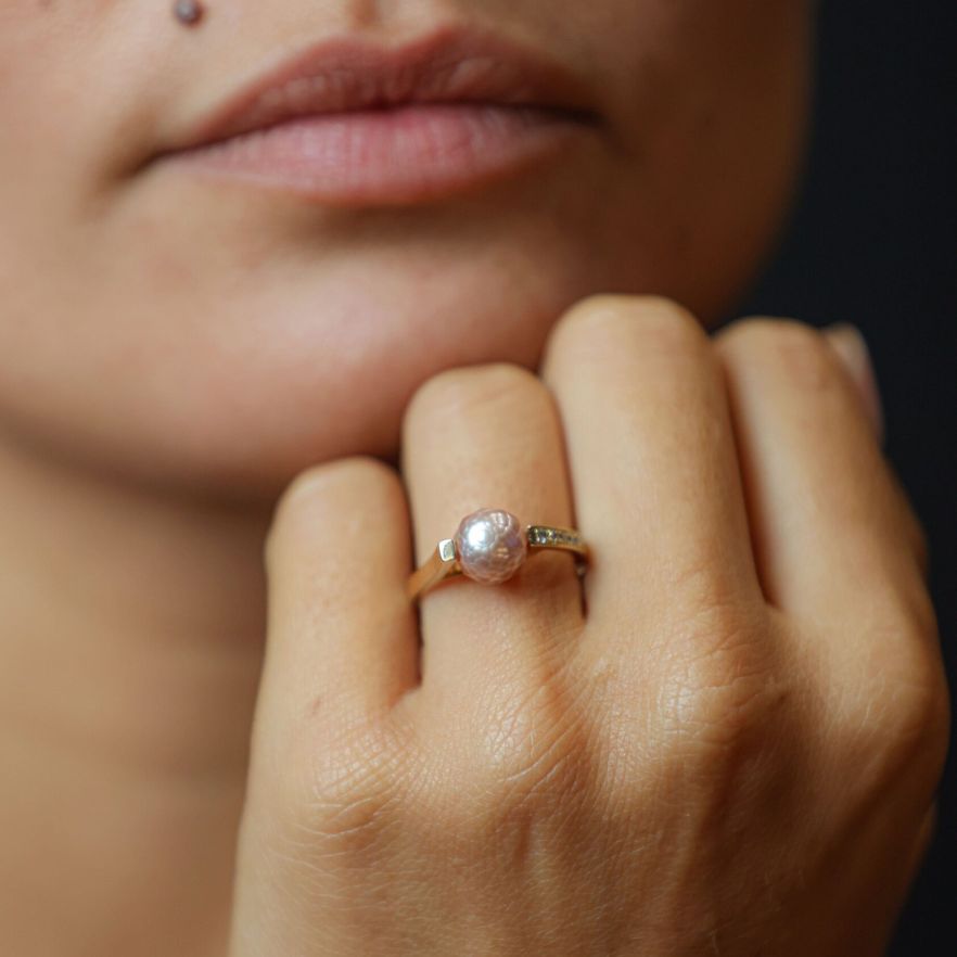 Bague or jaune et perle violine