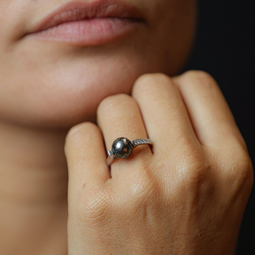 Bague or gris et perle de Tahiti