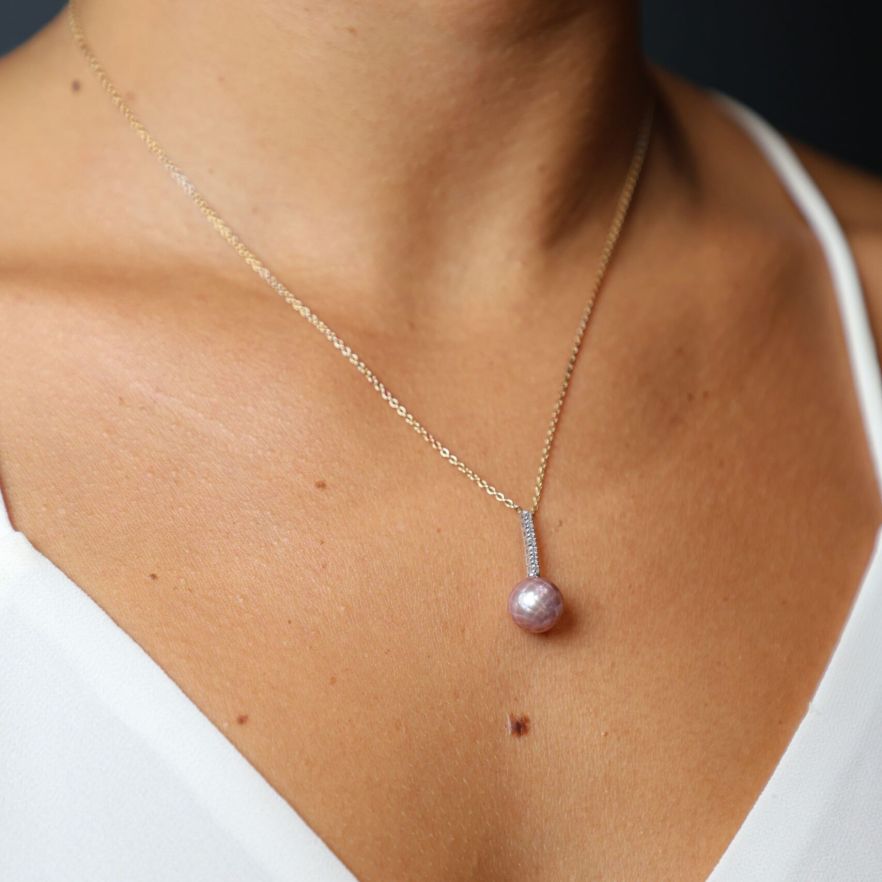 Collier or jaune perle violine