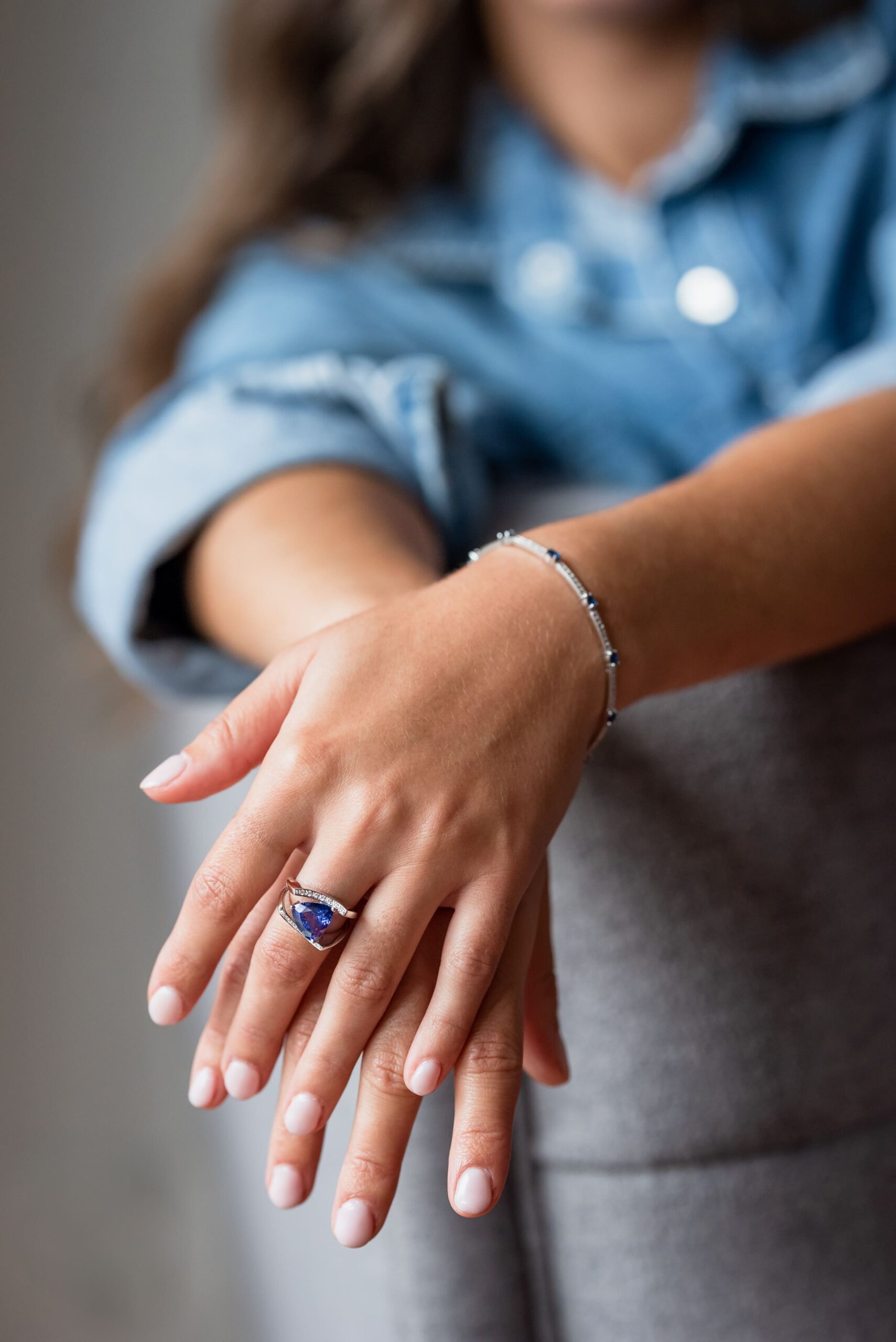 Son design sculptural met en valeur la couleur profonde de la tanzanite, tandis que les lignes ouvertes de l’anneau apportent légèreté et modernité. Une bague lumineuse, rare et intemporelle.