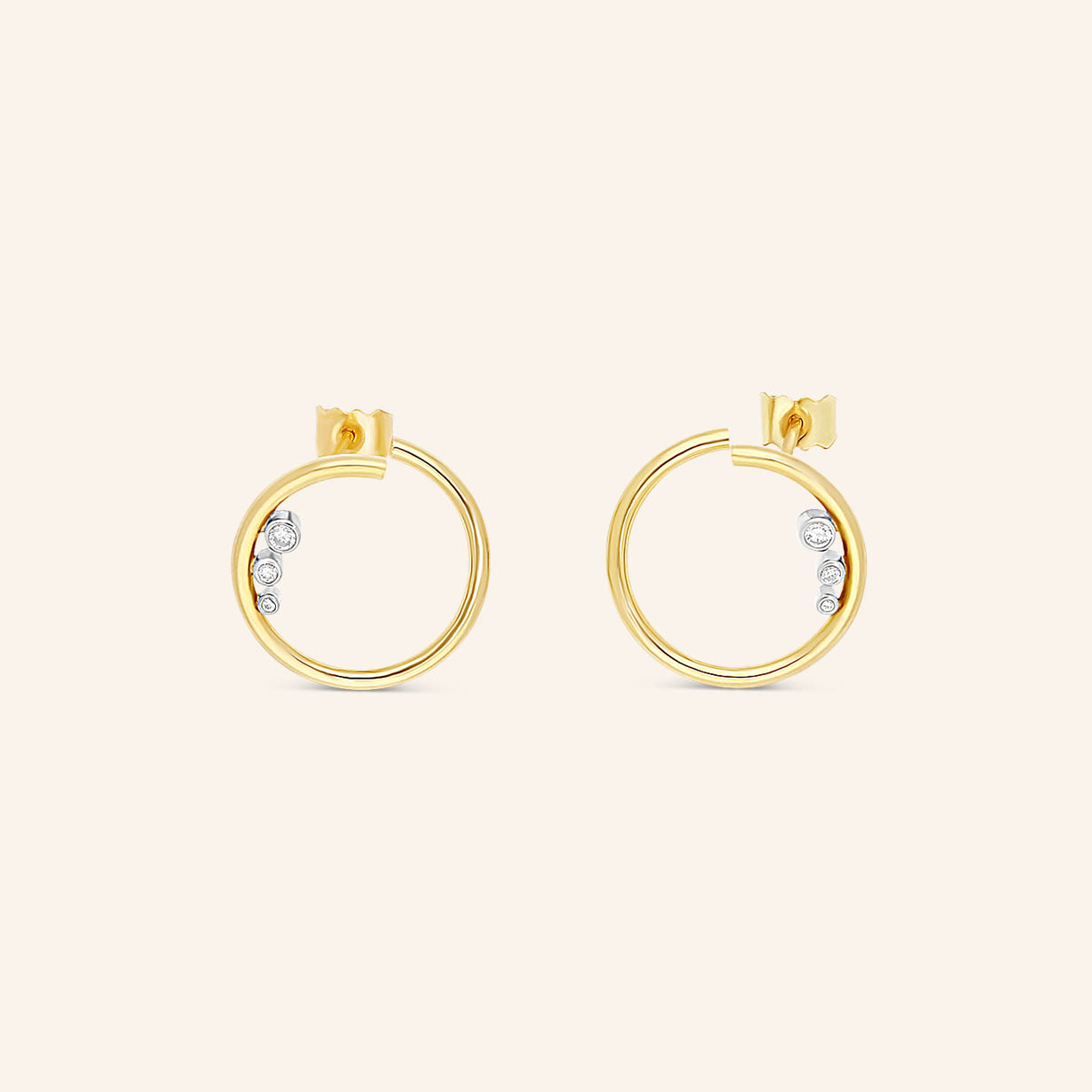 Chaque création est façonnée en or 750 millièmes (or jaune et gris, à partir de 3,73 g) et ornée de 6 diamants taille brillant, sertis clos, pour un éclat naturel et une élégance intemporelle. Poids total : environ 0,10 ct – Qualité : DF VS2.